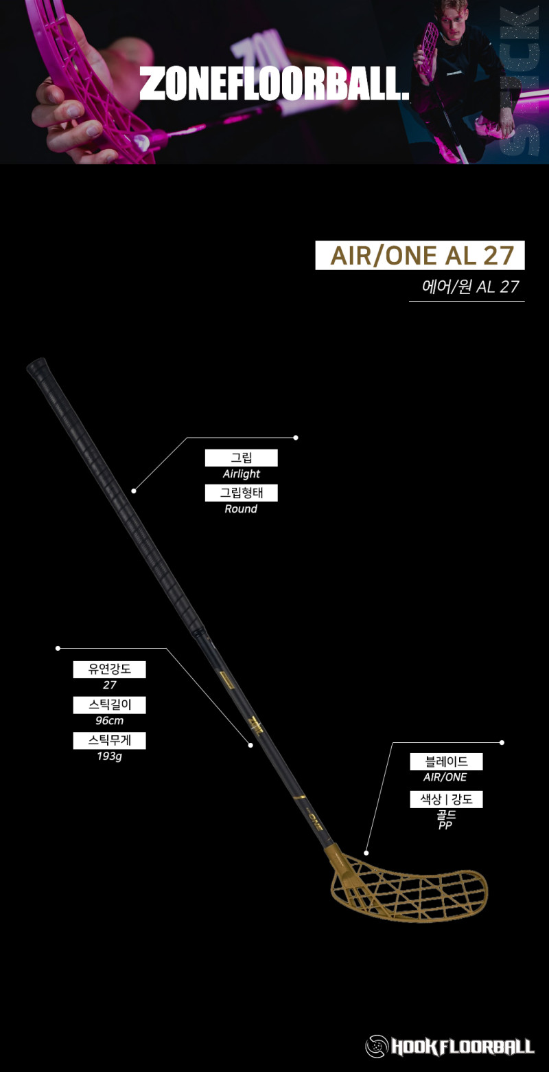플로어볼 스틱 - ZONE) AIR/ONE AL 27 raw/gold 96cm